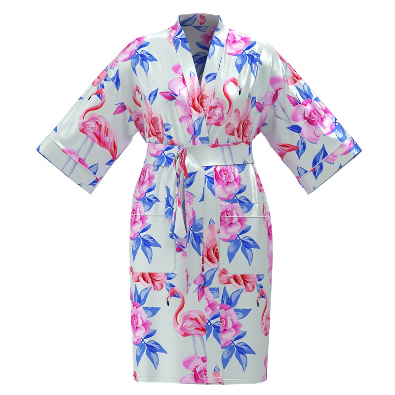 This 9 patterns flamingo print silk satin / charmeuse fabric available in 16mm, 19mm, 22mm, 30mm, and the highest 40mm all momme weight, the background color can be changed to any color, the pattern size can be adjust to you want. Accept custom and bulk order.