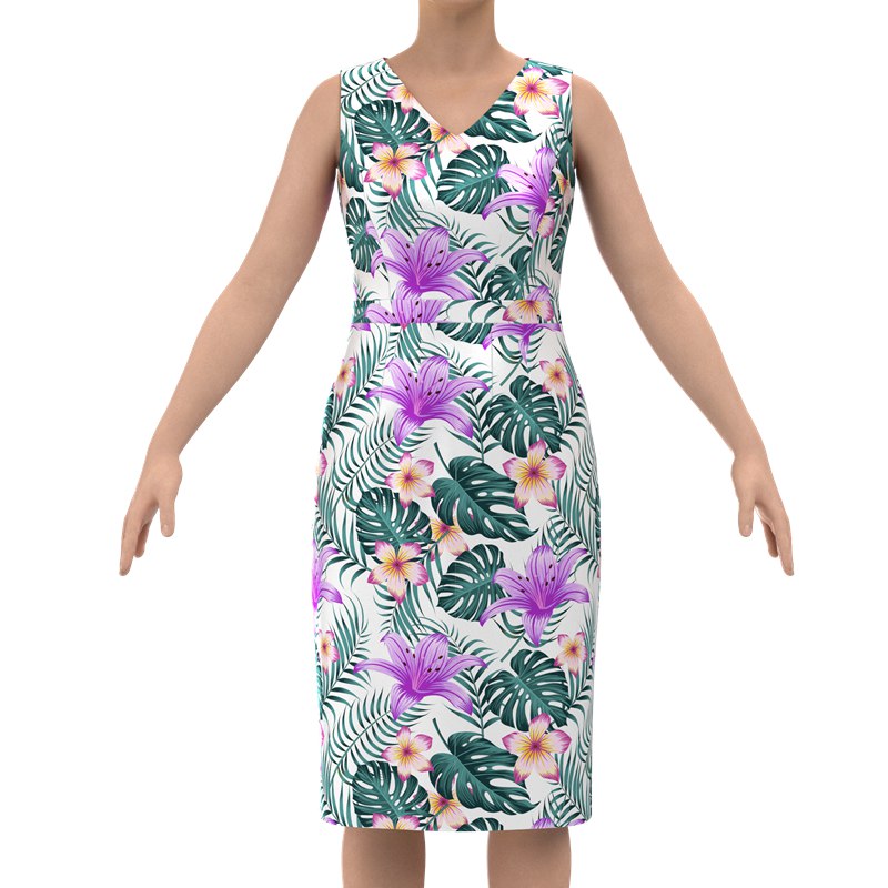 The pattern size can be adjust to any you want, the backgound color can be changed to any you want, please tell us the pattern size and the color HEX code. The fabric picture shows it put on a model height 175 cm.